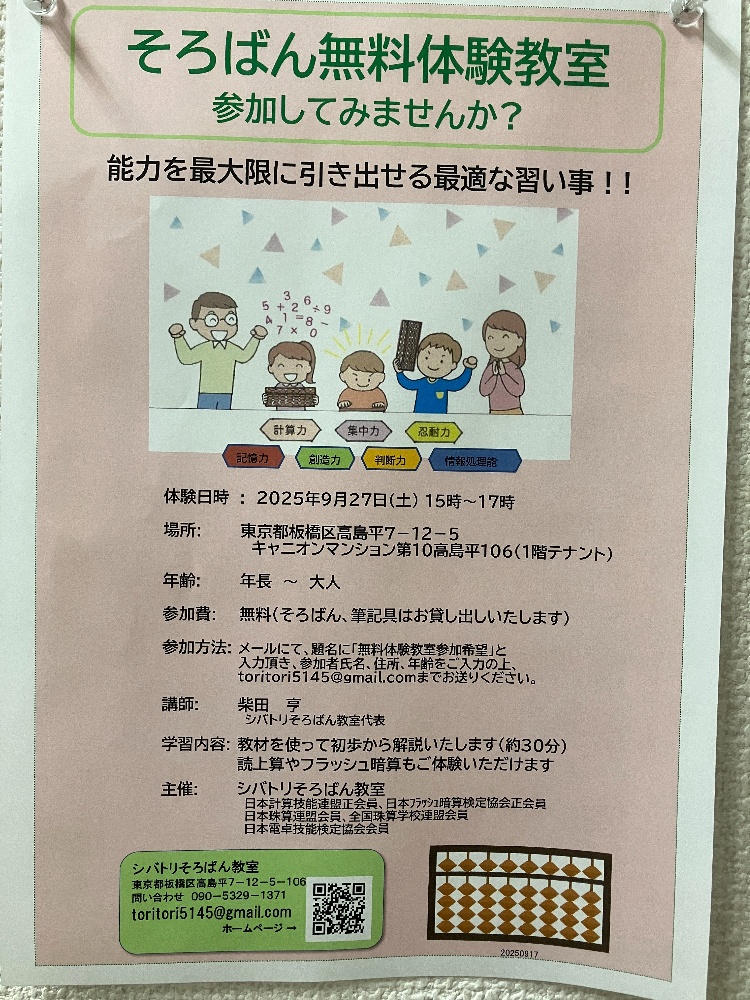 フラッシュ暗算や読上算、英語読み上げ算も体験いただきます。