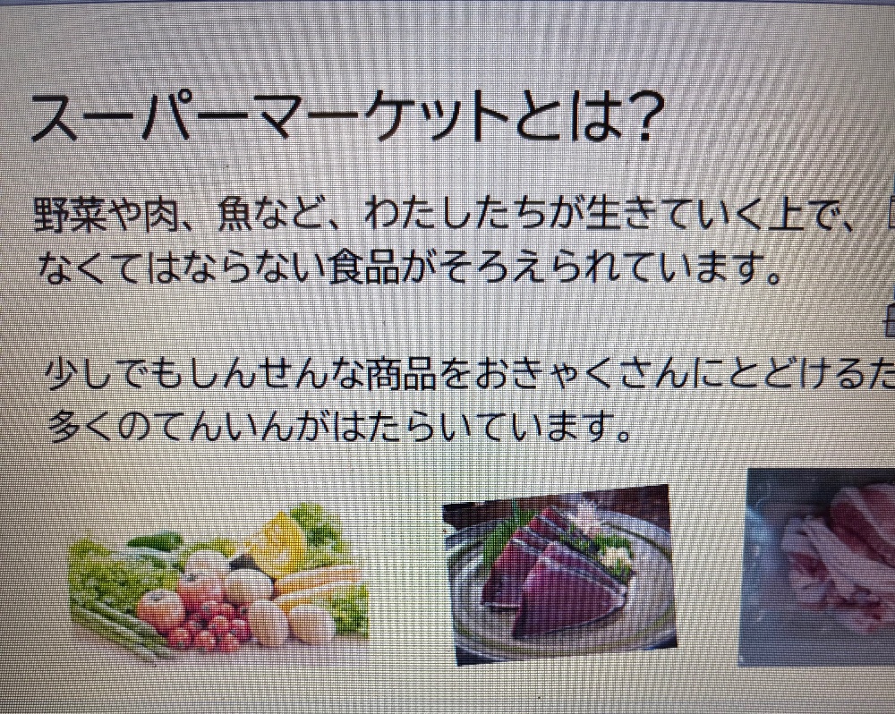 小学生からのキャリア教育、お仕事紹介第三弾は「スーパーマーケット店員」、今回は生徒さん全員に案内をだし、手挙げ式で参加いただきました。
